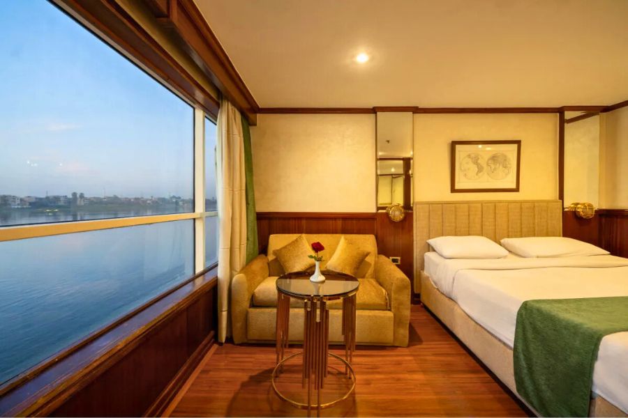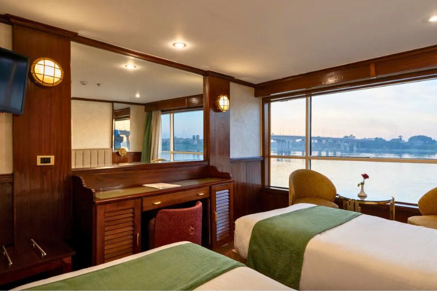 The MS Magic II Nile Cruise offers a relaxed and comfortable way to explore the legendary River Nile, sailing between Luxor and Aswan. This elegant five-deck river cruiser blends classic design with modern comforts, creating a welcoming atmosphere ideal for couples, mature travellers and culture-focused holidaymakers seeking excellent value.With its smaller passenger capacity, Magic II delivers an intimate cruising experience, ensuring attentive service and a friendly onboard environment. Cabins are well-appointed with large panoramic windows, allowing guests to enjoy uninterrupted views of the Nile’s palm-lined banks and golden desert landscapes. Full-board dining is served in the main restaurant, featuring a combination of international cuisine and authentic Egyptian dishes prepared fresh daily.