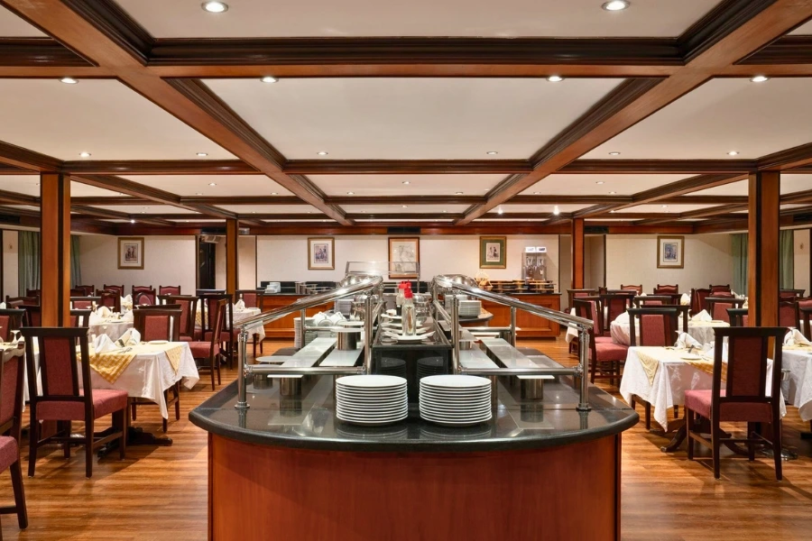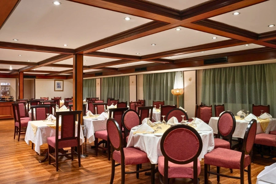 The MS Nile Commodore Nile Cruise delivers a classic deluxe sailing experience along Egypt’s legendary River Nile, combining traditional elegance with comfortable modern facilities. Designed for travellers who want authentic cultural immersion without sacrificing comfort, this mid-sized vessel offers an intimate atmosphere perfect for couples, small groups, and culturally curious explorers.Onboard, guests enjoy full-board dining in the panoramic main restaurant, where international and Egyptian cuisine is freshly prepared daily. Evenings feature relaxed entertainment in the lounge bar, including traditional Galabeya parties and live music. The spacious sun deck, complete with swimming pool and shaded seating, is ideal for unwinding between guided excursions.