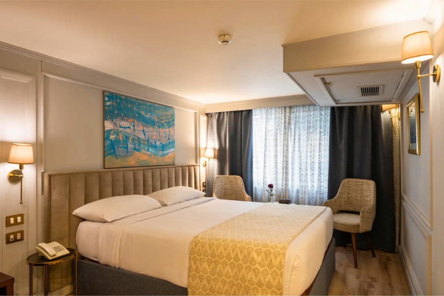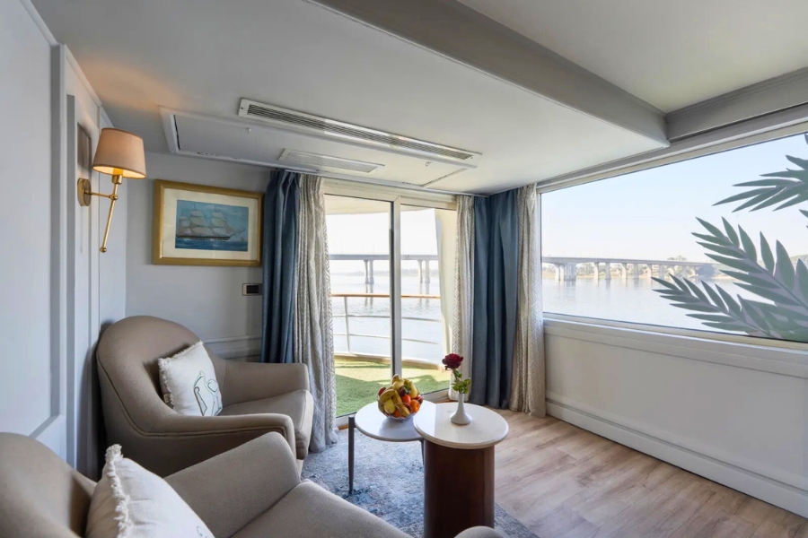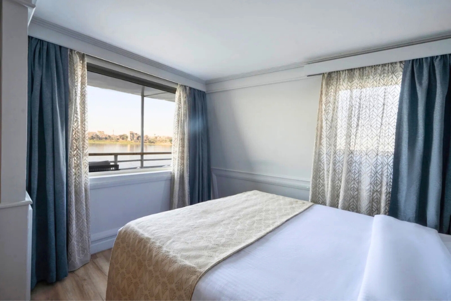 M/S Nile Excellence by Serenity Nile Cruises offers a refined yet welcoming way to explore the legendary River Nile. Designed with contemporary comfort and subtle Pharaonic-inspired décor, this boutique Nile cruise ship blends modern styling with cultural touches that reflect Egypt’s rich heritage.Carrying around 60 guests across well-appointed cabins and suites, Nile Excellence delivers a sociable yet intimate atmosphere. It suits couples, mature travellers and small groups looking for a comfortable river cruise with entertainment and leisure facilities onboard. Families are also welcome, thanks to spacious Junior and Royal Suites.