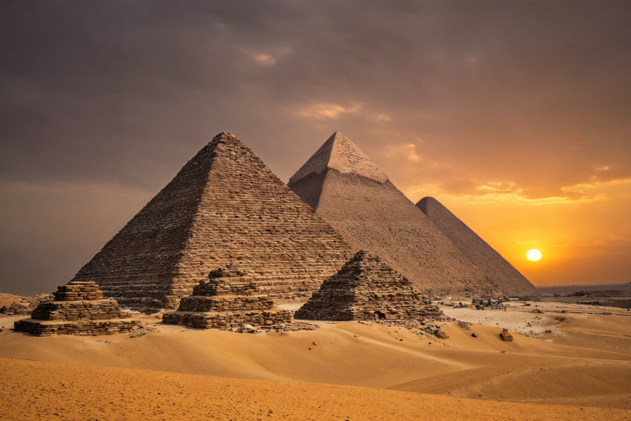Stand before the last surviving Wonder of the Ancient World — the Great Pyramids of Giza, built over 4,500 years ago as monumental tombs of Egypt’s mighty pharaohs.